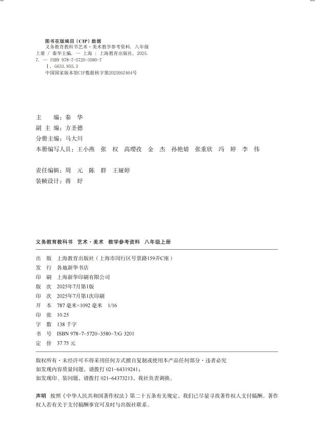 今年9月,全国义务教育阶段的《艺术·美术》教材持续更新,其中一年级、二年级、七年级以及八年级的学生们已经开始使用全新的教材进行学习。自2022年1月至今,我院方圣德教授受邀参与了上教版国家教材的编写工作,并担任七年级至九年级的《艺术·美术教学参考资料》副主编一职。
