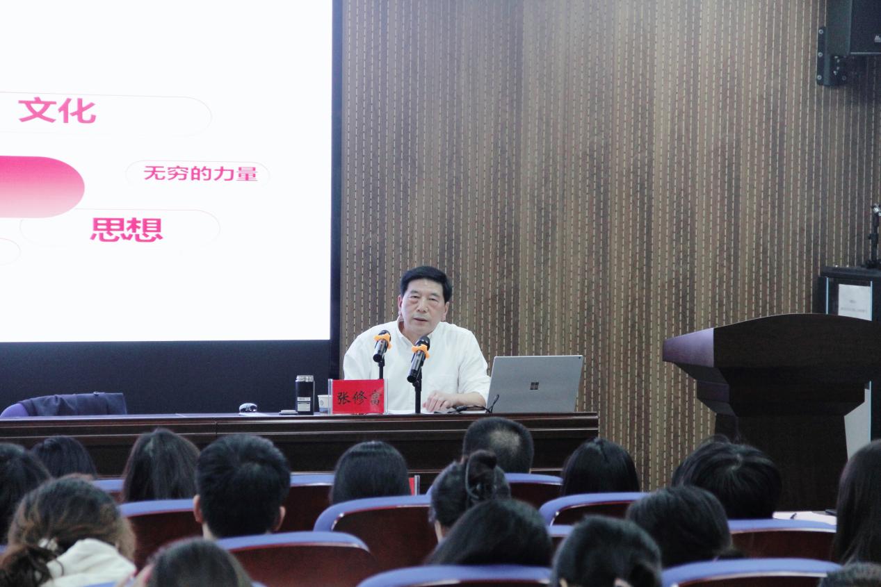 10月31日,湖北省委宣传部原二级巡视员张修福同志受邀在美术学院学术报告厅,以“崇高信仰与人生成长”为主题开展专题讲座。学校党委常委余晚霞,学院党委书记刘红超、副书记杨波,学院教师及学生代表现场聆听,讲座由副院长邵照坡教授主持。