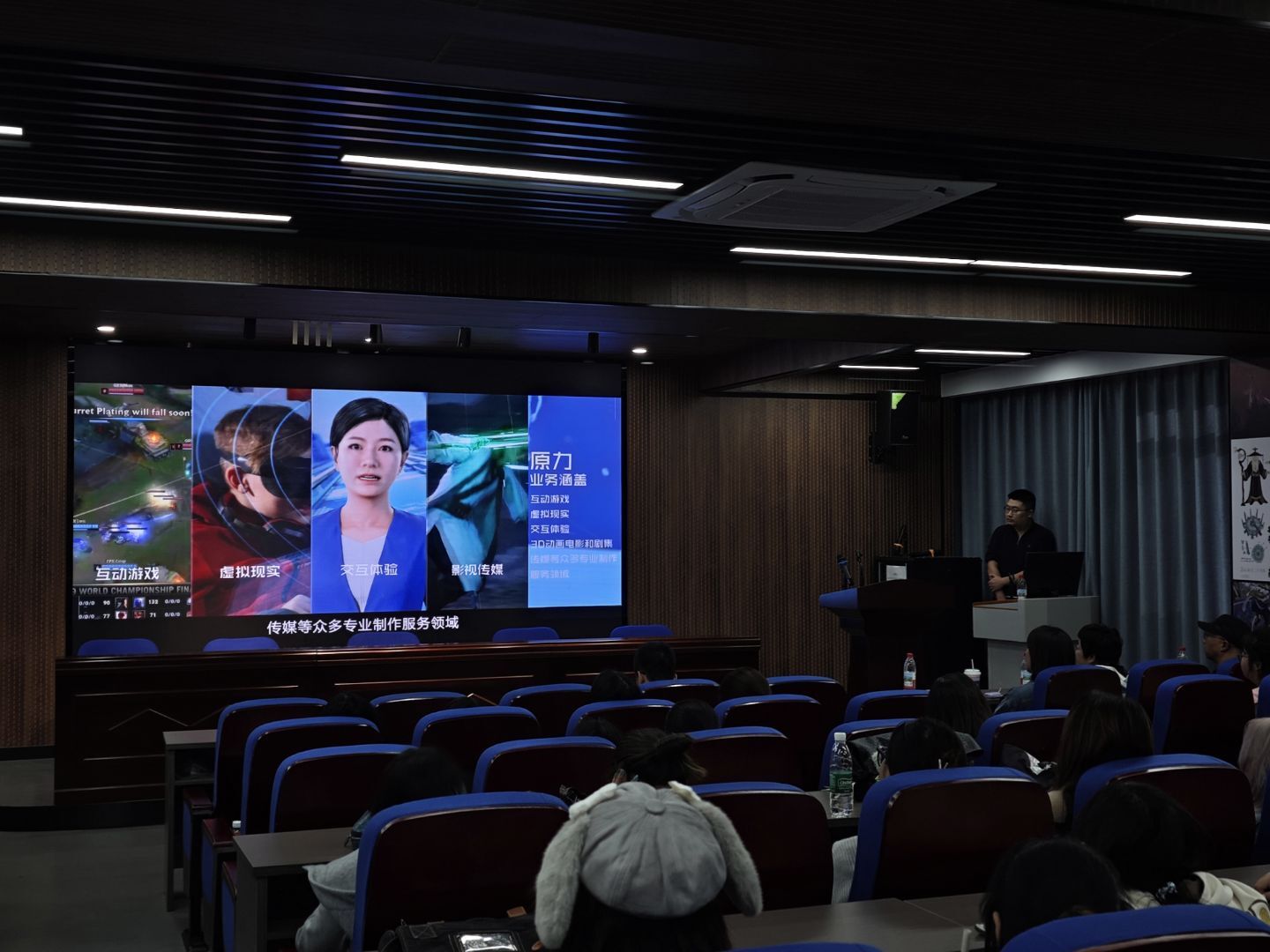 宣讲会上,企业代表首先系统介绍了原力数字科技作为国家级专精特新“小巨人”企业的发展实力与行业领先地位。公司雄厚的业务布局、参与制作的众多知名项目以及在AI、数字人等前沿领域的持续探索,为同学们清晰地勾勒出数字内容产业的广阔前景,极大地激发了大家的专业认同感和职业向往。