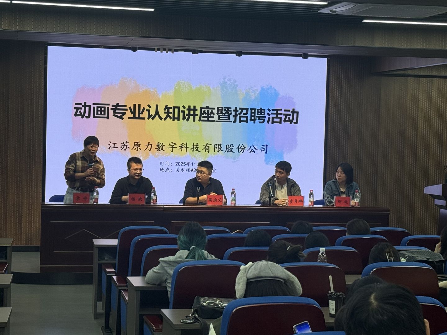 为深入贯彻落实学校关于促进学生高质量就业的工作部署,全力护航毕业生职业启航,11月13日,我院主动对接行业头部企业,成功邀请江苏原力数字科技股份有限公司来校,举办了一场内容翔实、气氛热烈的专业认知讲座暨2026届秋季招聘专场宣讲会。学院党委高度重视此次校企对接活动,党委副书记杨波,动画系副主任柳乾,专业教师胡晓洁、骆燕巍、金方赤及毕业班辅导员袁婷共同参与组织,与同学们一道,共话行业前沿,共绘职业蓝图。