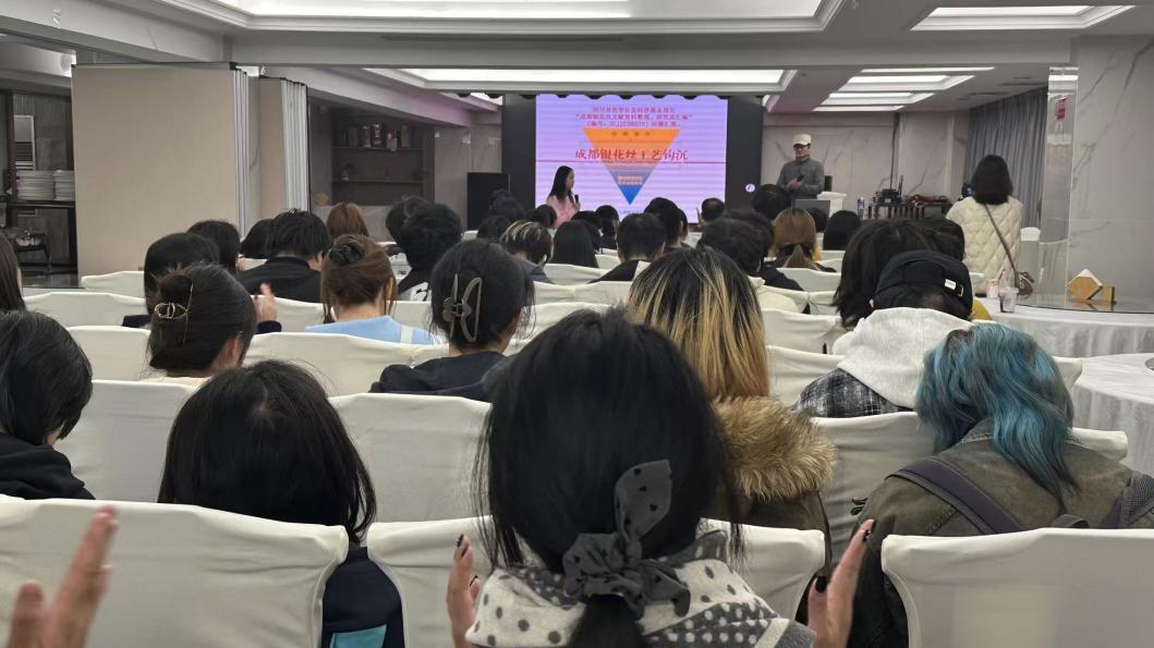 讲座中,梅少云从成都银花丝的历史源流谈起,梳理其作为南派花丝典型代表的形成脉络,并指出成都银花丝制作技艺已于2008年被列入国家级非物质文化遗产名录,是成都地区最具地方辨识度的传统特种工艺之一。