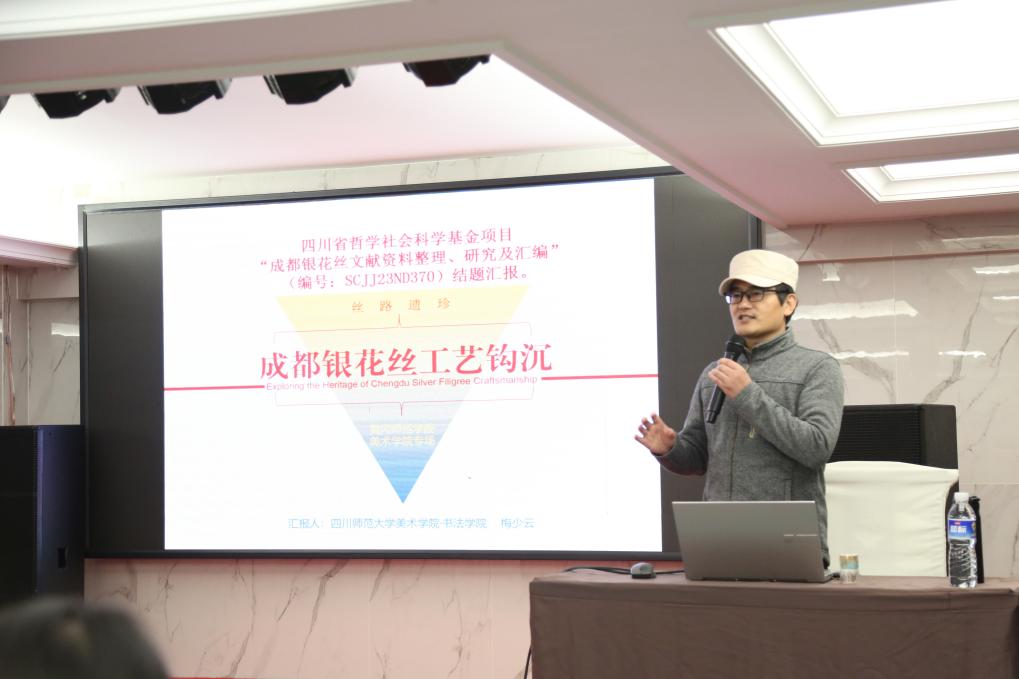 讲座中,梅少云从成都银花丝的历史源流谈起,梳理其作为南派花丝典型代表的形成脉络,并指出成都银花丝制作技艺已于2008年被列入国家级非物质文化遗产名录,是成都地区最具地方辨识度的传统特种工艺之一。
