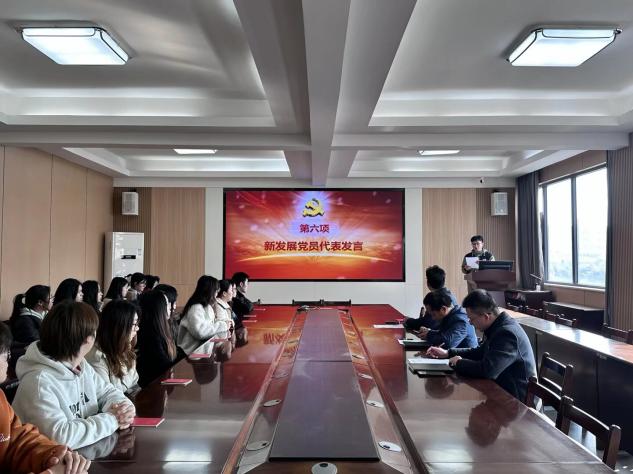 新发展党员代表吴豫同志在发言中感谢党组织的培养,并郑重承诺:将持续强化理论武装,永葆对党忠诚;扎根人民、服务社会,将个人理想融入祖国发展;严守党纪、锤炼修养,以更高标准担当青年责任。正式党员代表程立著同志结合自身成长经历,鼓励新党员坚定理想信念、练就过硬本领、发挥模范作用、锤炼高尚品德,将青春奋斗融入党和人民事业。