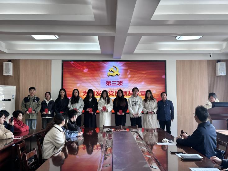 仪式中,刘红超同志向新党员逐一颁发党章与党徽,寄予组织的殷切期望。