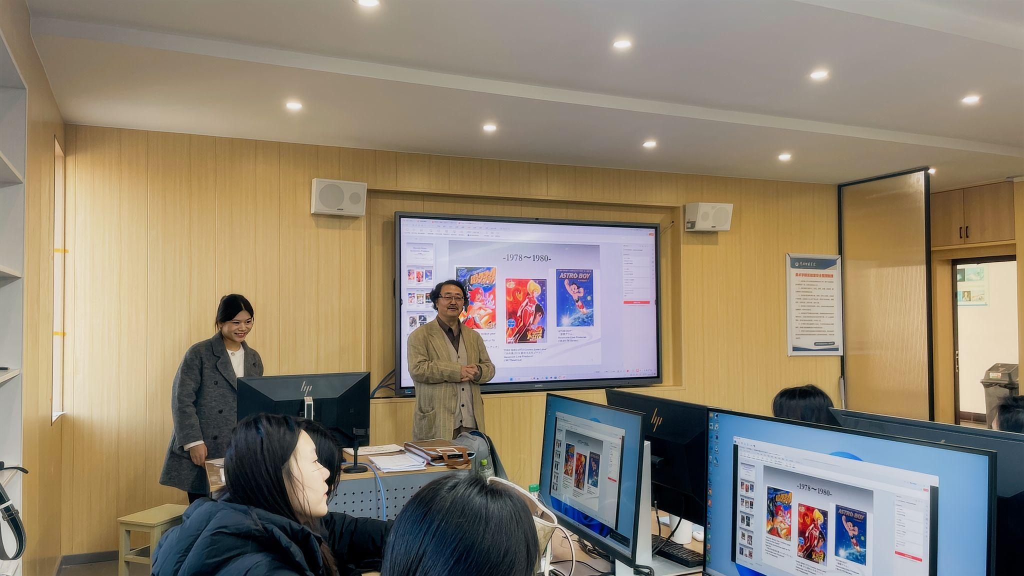 12月15日-19日,日本吉备国际大学井上博明教授与京都艺术大学特聘教授高桥信幸教授来校,为我院中外合作办学项目(动画)专业的学生开展了为期一周的集中课程教学,期间还举办了主题鲜明的学术讲座,带来了动漫领域的前沿洞察与深度比较。