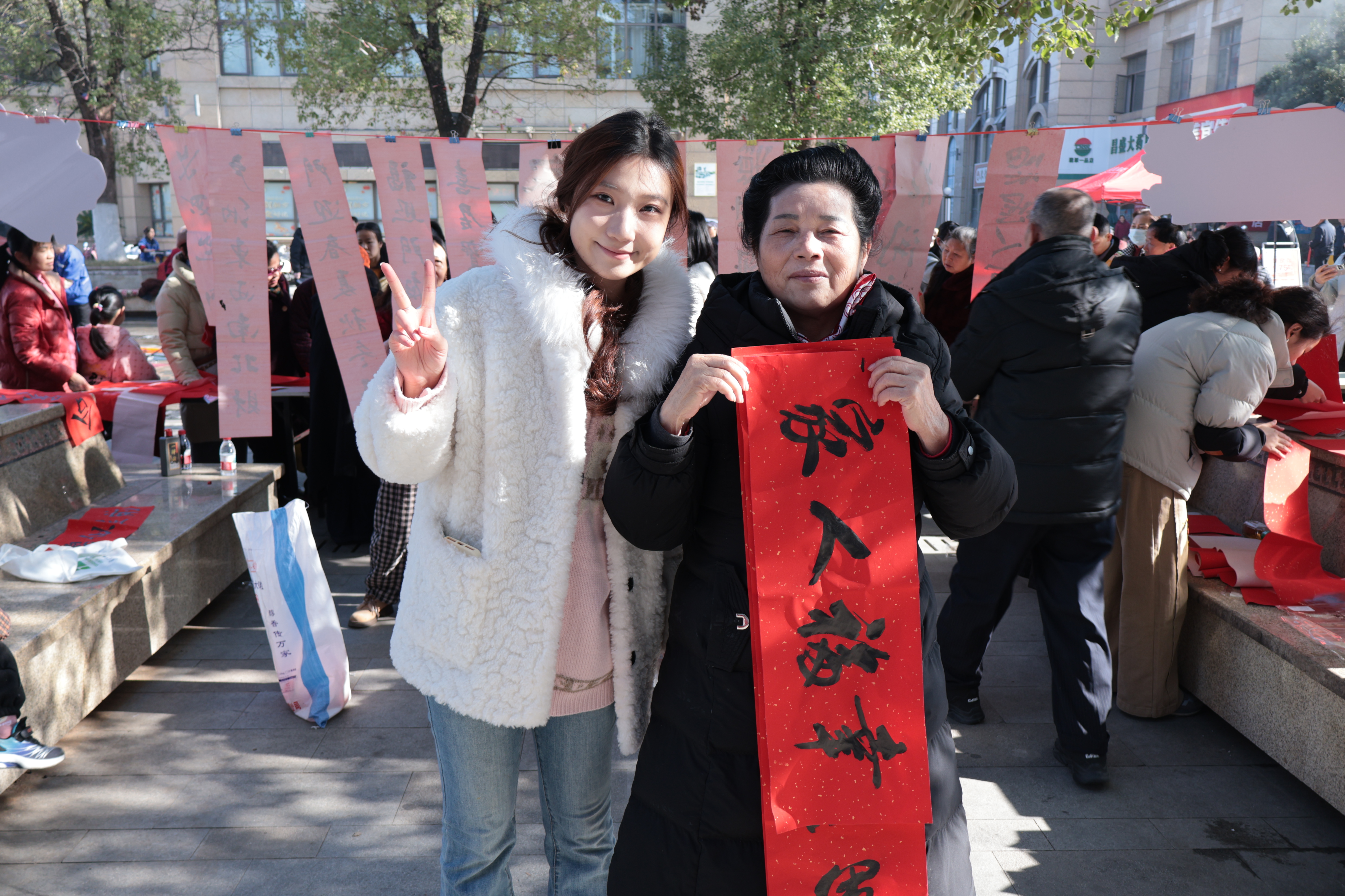 活动现场,书法志愿者挥毫泼墨,一副副寓意吉祥、饱含祝福的春联和“福”字送到居民手中,把新春的喜气与温暖传递到千家万户。
