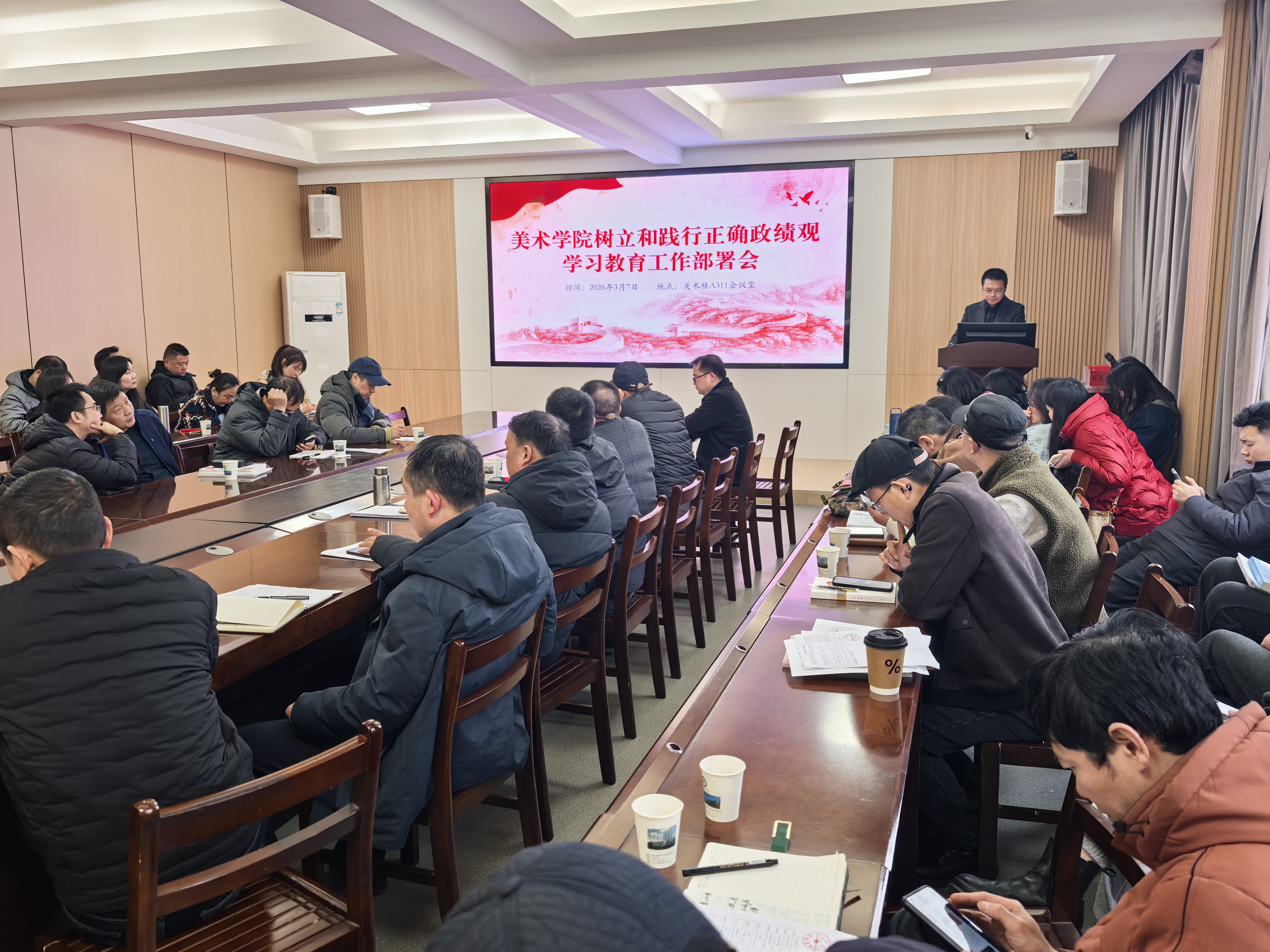 学院党委副书记、纪检委员杨波同志通报了2025年度学院领导班子民主生活会准备、召开和学校督导组反馈的情况;传达学习了省市委、学校党委关于开展树立和践行正确政绩观学习教育的相关精神,通报了美术学院关于树立和践行正确政绩观学习教育的实施方案。