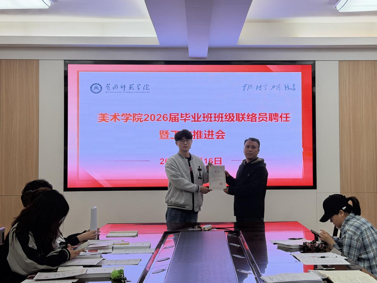受聘学生联络员纷纷表示,将以认真负责的态度履行岗位职责,积极配合学院做好毕业季各项工作,用心用情服务同学,以实际行动彰显美院学子的责任与担当。美术学院持续以务实行动,为2026届毕业生平稳离校、高质量就业保驾护航。