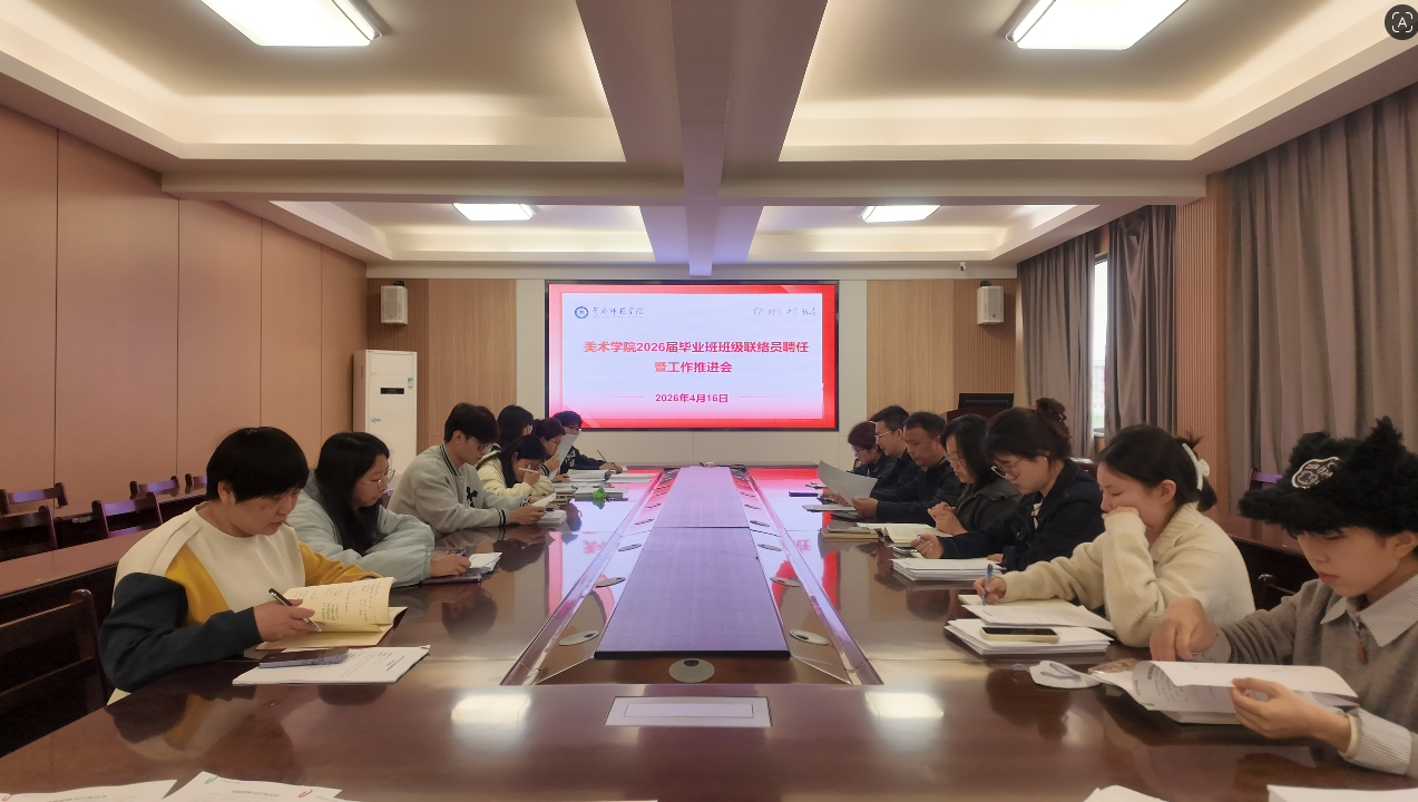 4月16日下午,为进一步畅通师生沟通渠道,高效推进毕业季各项重点工作,美术学院在美术楼A311会议室举行2026届毕业班班级联络员聘任暨工作推进会。学院党委副书记杨波、副院长邵照坡、学工办副主任张诗玉、辅导员袁婷、教学秘书周稳及班级联络员参加会议。会议由张诗玉主持。