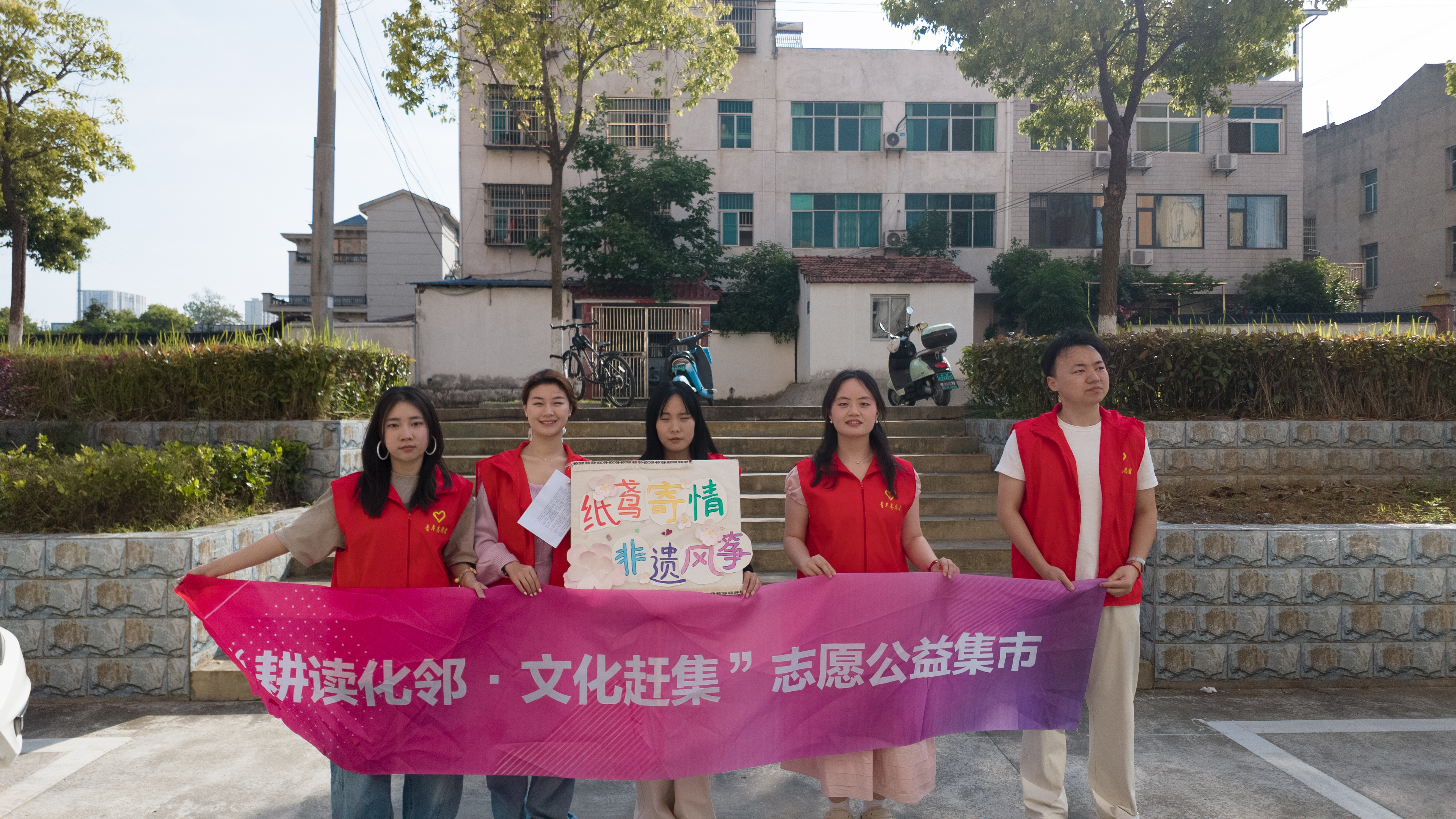 4月26日,黄冈师范学院美术学院曙光志愿团队走进西湖社区,参与由共青团湖北省委主办的“耕读化邻·文化赶集”志愿公益集市活动。本次活动是美术学院深化研究生教育教学改革、积极推行“U-M-S”(高校-博物馆-社区)协同育人模式的重要实践。学院通过将研究生专业课程《校外艺术活动组织与管理》教学现场搬到社区一线,实现了课堂教学与志愿服务的“无缝对接”,不仅让师生在真实的社会情境中践行“专业所长、服务人民”的初心,更以非遗文化为纽带,为基层文化建设注入了深厚的艺术温度。